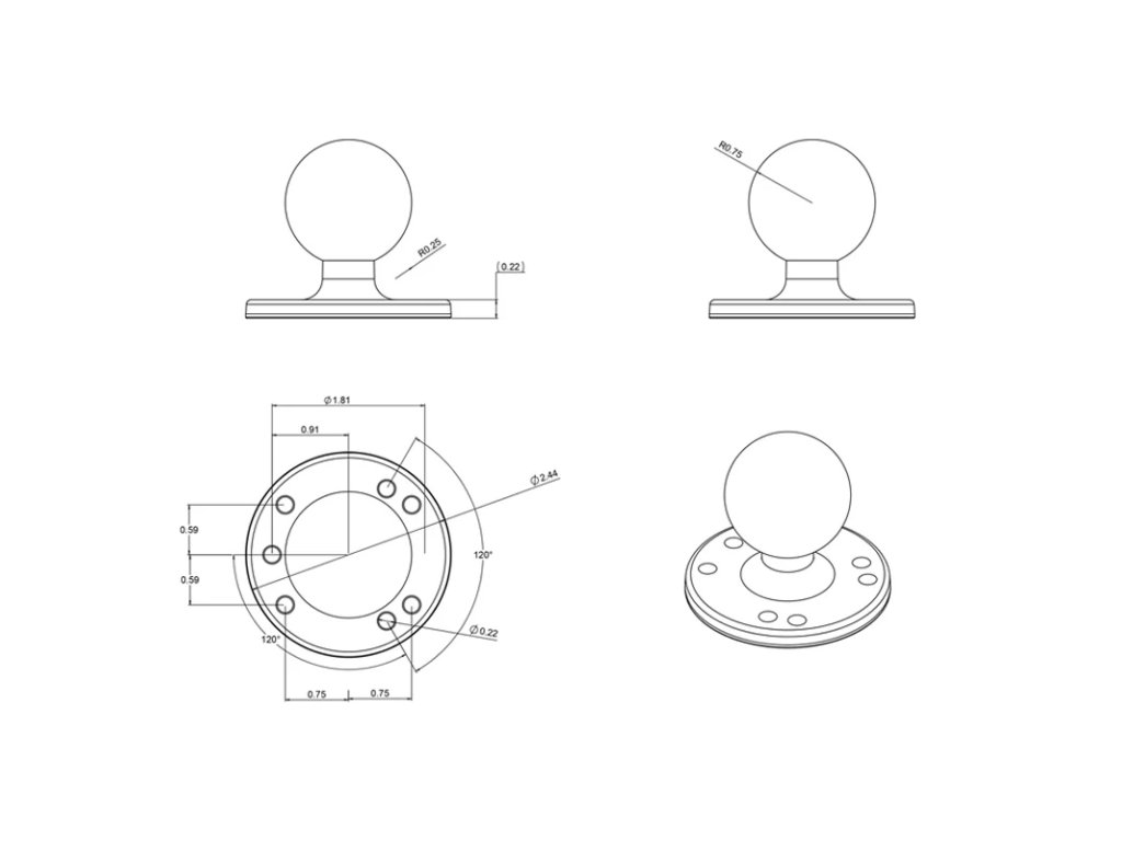 - Připevněná 1,5" gumová koule RAM® velikosti C umožňuje připojení k jakémukoli rameni RAM® s dvojitou paticí velikosti C; technologie koule a patice umožňuje téměř neomezenou nastavitelnost.