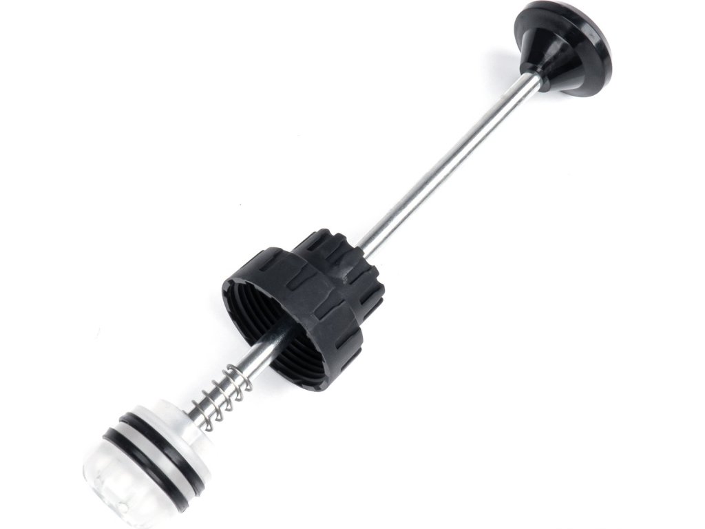 Všechna těsnění jsou vyrobena s největší přesností a umožňují práci pod vysokým tlakem. Stříkačka má odvzdušňovací systém, který vyrovnává tlak pod pístem, což zlepšuje její účinnost a plynulost chodu. Průsvitný válec umožňuje přesně kontrolovat objem tekutiny a celkový stav tekutiny.