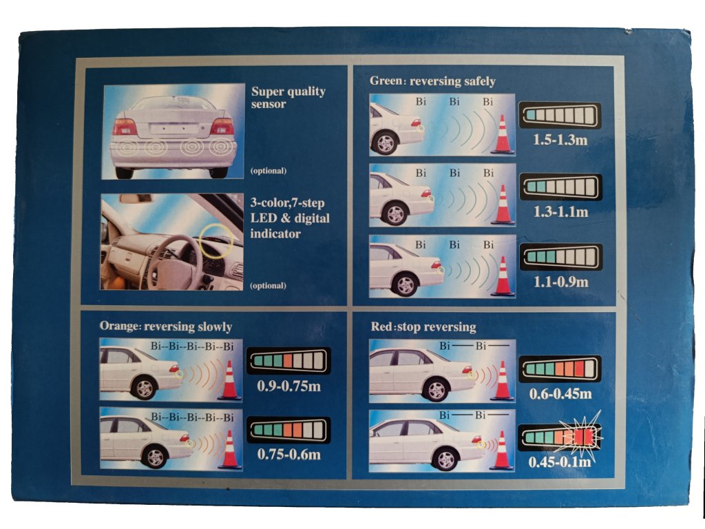 Signalizátor slouží k určení vzdálenosti vozidla od překážky, ta je indikována na číselném displeji v centimetrech (palcích) a zvukovou signalizací.