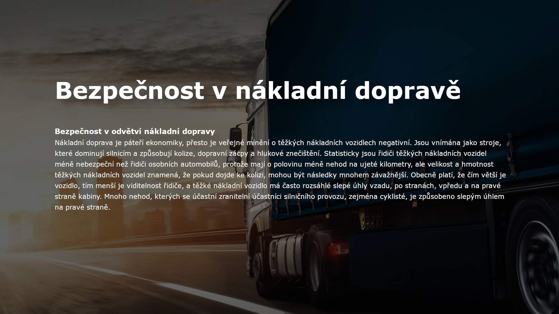Bezpečnostního vybavení pro vozidla nákladní dopravy